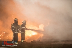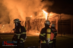 Um kurz nach Mitternacht erhielt die Rettungsleitstelle der Feuerwehr Hamburg über den Notruf 112 die Meldung, dass in der Nähe von Gut Wendlohe im Stadtteil Schnelsen eine Lagerhalle brenne und Feuerschein deutlich erkennbar und weithin sichtbar sei. Daraufhin wurden mit dem Alarmstichwort -Feuer2- sofort die Löschgruppen der Feuer- und Rettungswachen Stellingen und Alsterdorf, ein Führungsdienst B, der Umweltdienst, der diensthabende Pressesprecher sowie die Freiwilligen Feuerwehren Schnelsen, Niendorf und Eidelstedt mit dem Bereichsführer FF – Eimsbüttel zur gemeldeten Einsatzadresse alarmiert. Noch auf der Anfahrt stellte der Einsatzleiter der ersten Löschgruppe fest, dass sich der genaue Einsatzort jenseits der Landesgrenze zu Schleswig Holstein befindet. Worauf über die Rettungsleitstelle West zuständigkeitshalber die Freiwillige Feuerwehr Bönningstedt und weitere Kräfte alarmiert wurden. Als die ersten Einsatzkräfte auf dem Gelände des Golfclubs Gut Wendlohe eintrafen, stand eine Lagerhalle mit den Grundmaßen von circa 20 x 50 Metern bereits im Vollbrand. Sofort wurde eine Riegelstellung mit einem Wenderohr über eine Drehleiter und einem B-Rohr zum Schutz einer angrenzenden Garage eingeleitet.Aufgrund der unzureichenden Löschwasserversorgung musste im Verlauf eine Wasserversorgung über eine Wegstrecke von mehreren Hundert Metern mithilfe eines speziellen Schlauchwagens der Freiwilligen Feuerwehr Lokstedt und weiteren Löschwasserpumpen eingerichtet werden. Trotz eines massiven Löschangriffes von außen, durch mehrere Trupps mit umluftunabhängigem Atemschutz und insgesamt vier C-Rohren, konnte ein ausbrennen der Halle nicht verhindert werden. Im weiteren Verlauf wurde die Einsatzstelle den Einsatzkräften aus Schleswig Holstein übergeben. Während des gesamten Einsatzes stand ein Rettungswagen aus Quickborn zur Absicherung der Einsatzkräfte in Bereitstellung. Verletzt wurde jedoch niemand. Insgesamt waren rund 50 Einsatzkräfte der Feuerwehr Hamburg und weitere 50 Einsatzkräfte aus dem benachbarten Schleswig Holstein vor Ort im Einsatz.