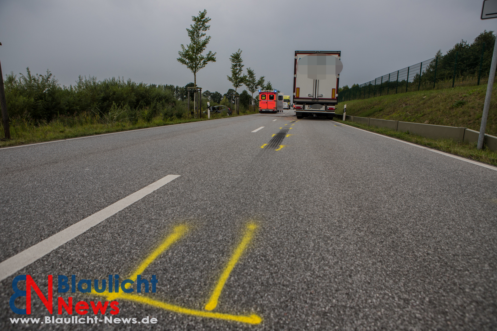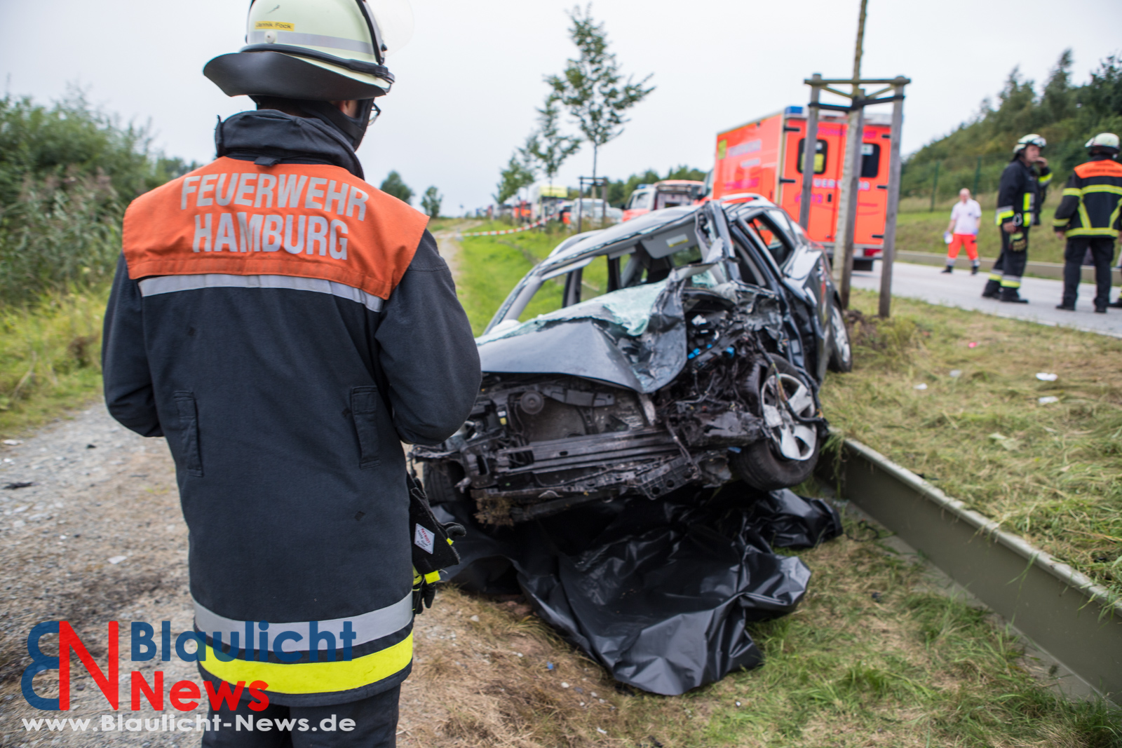 Am Dienstag gegen 16:30 stieß ein 80jähriger PKW-Fahrer auf der Straße „An der alten Süderelbe“ mit einem LKW frontal zusammen. Dabei wurde der PKW von der Fahrbahn geschleudert und blieb im Seitengraben liegen. Der Fahrer wurde dabei schwer eingeklemmt.